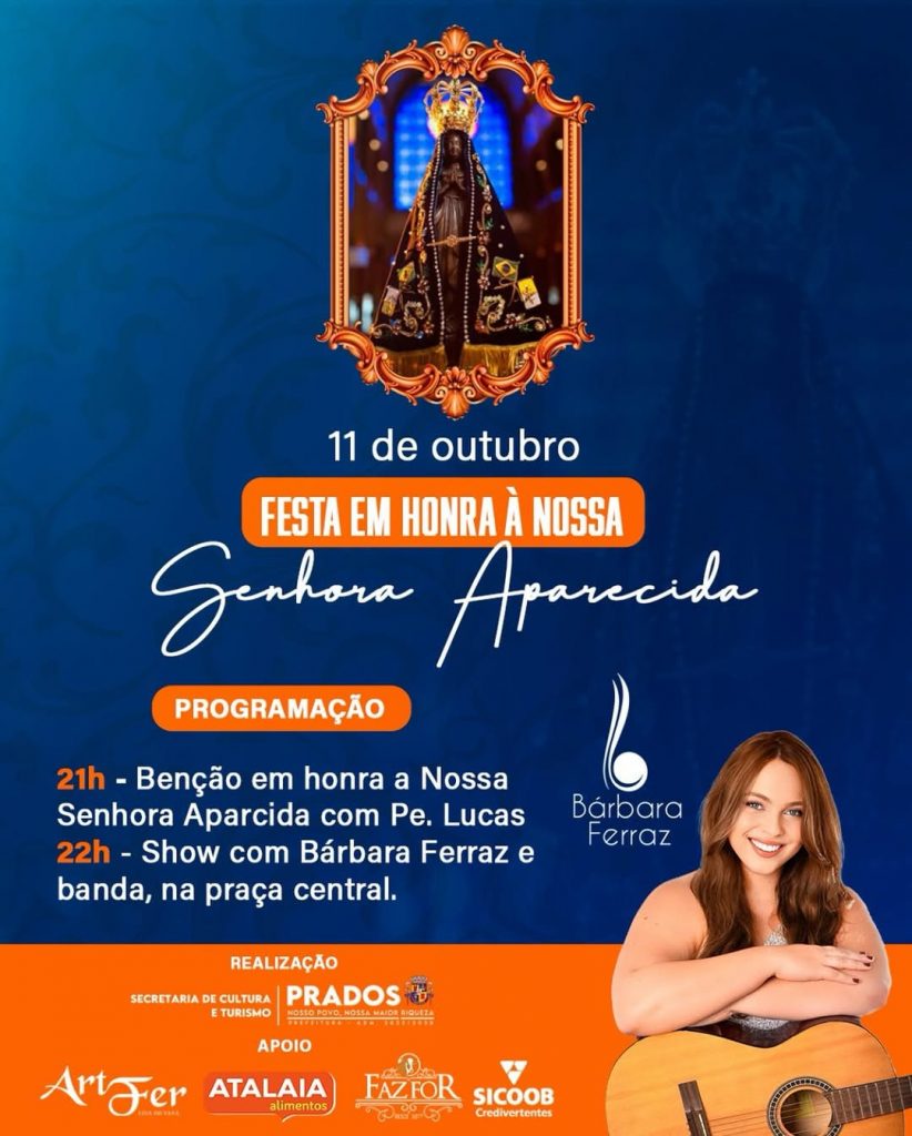 A comunidade de Prados se prepara para celebrar, no dia 11 de outubro, a tradicional Festa em honra à Nossa Senhora Aparecida, padroeira do Brasil. O evento promete momentos de fé, devoção e alegria para toda a família, reunindo moradores e visitantes em celebração especial.