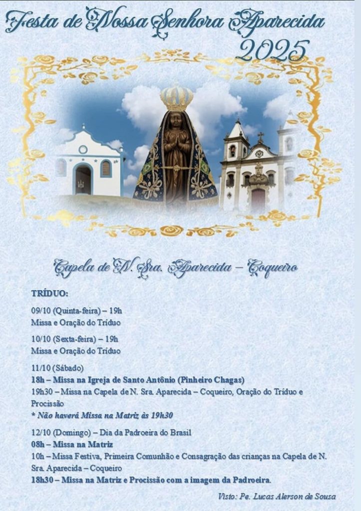 Dia da Padroeira do Brasil – 12/10 (domingo)