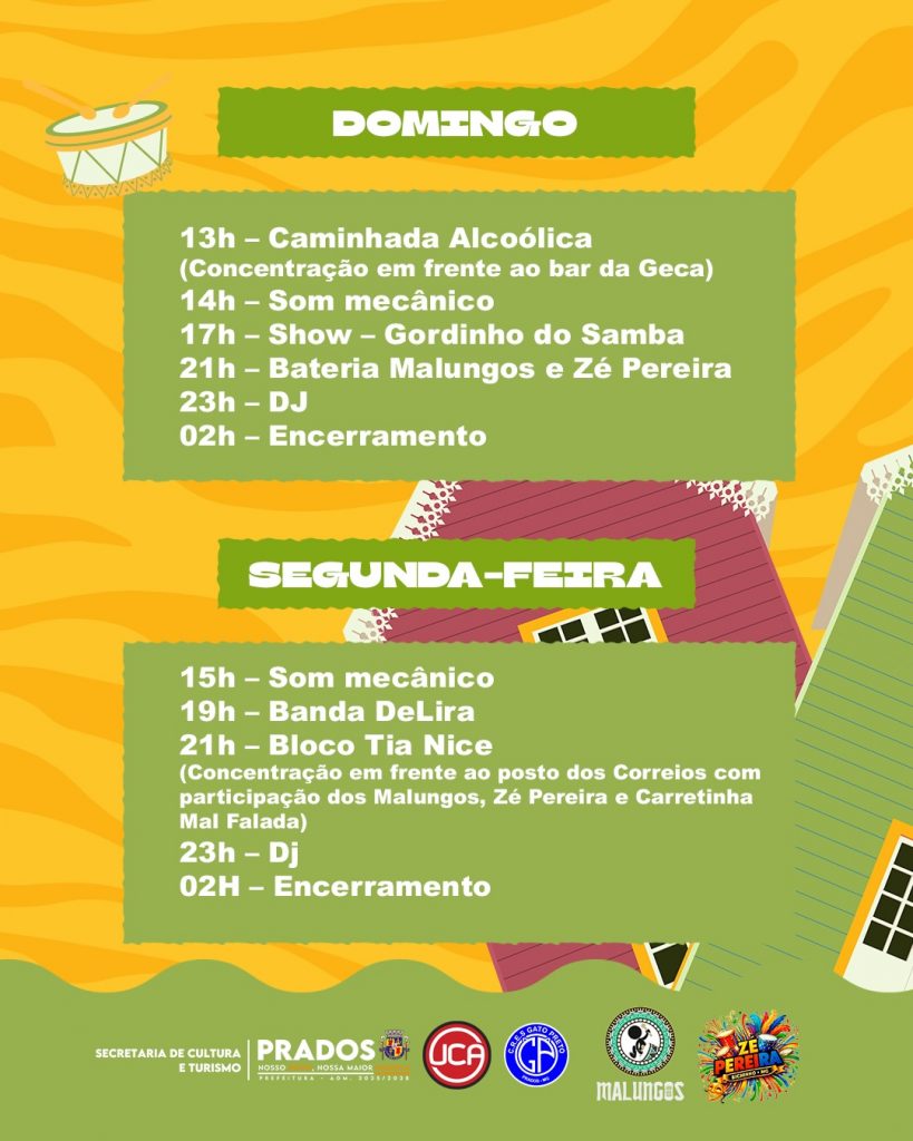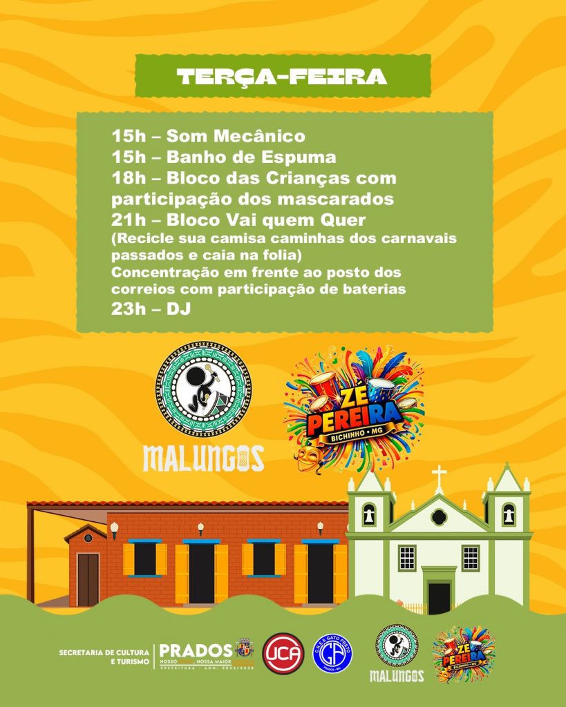 Os detalhes, horários e atrações do Carnaval de Bichinho estão reunidos no carrossel divulgado pelo Prados Online. Um convite para quem busca viver o Carna Prados 2026 de forma diferente, em um dos cenários mais encantadores e cheios de significado do município.